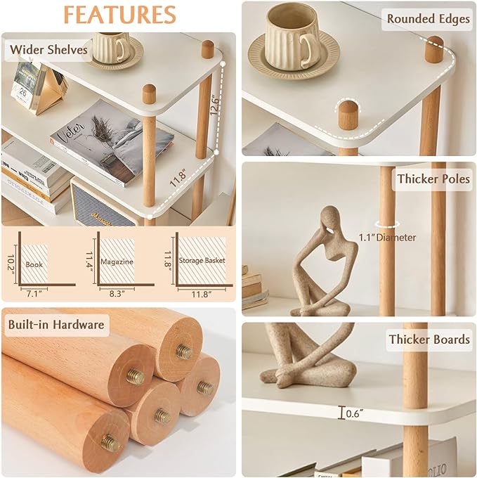 With its simple and clean-lined design, this book shelf will suit almost any style and will nicely decorate and beautify your house while saving you space. This floor-standing bookcase is made of a solid wood frame and thickened (1.6 cm) MDF shelves, which ensures the whole wooden bookshelf is robust, stable, and durable. The open storage shelves design provides the perfect platform for displaying your decorations, perfect for your bedroom, living room, kitchen, or office. We offer a rich choice of models. You can freely combine any number of bookshelves as you need. With the built-in hardware design, you can install it quickly without additional tools.
